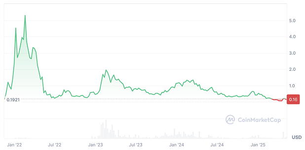 • 2025: In the beginning of 2025, the token went up again and hit $0.7. At the moment, MAGIC trades around $0.16.
