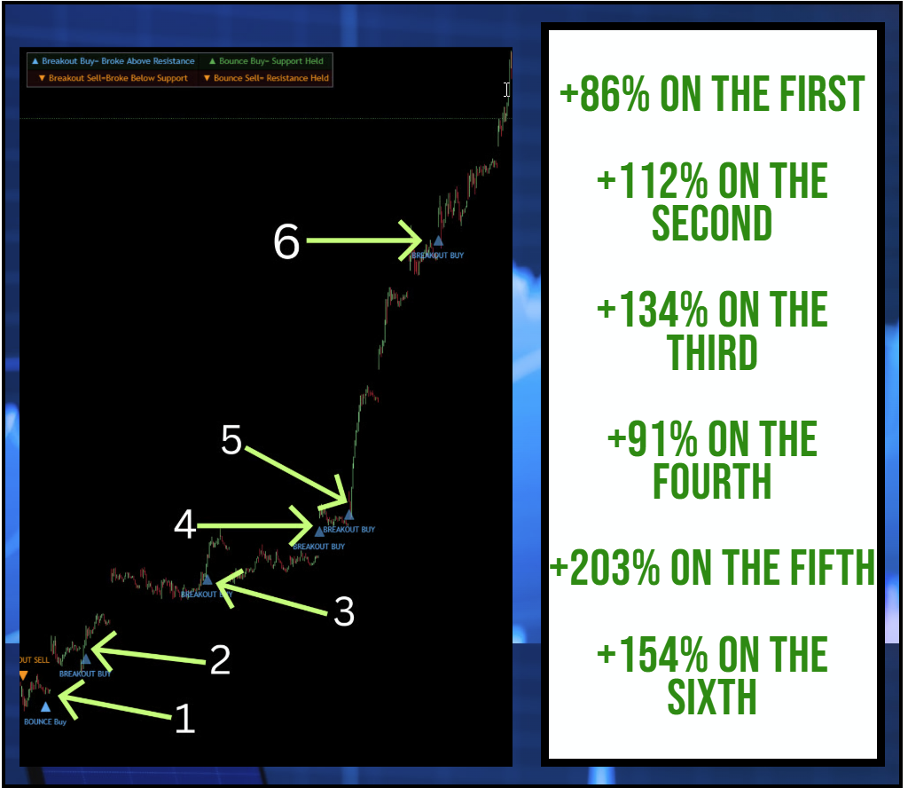 Ben doesn’t just talk theory—he’s shown dozens of examples from real trades the indicator has called, such as: