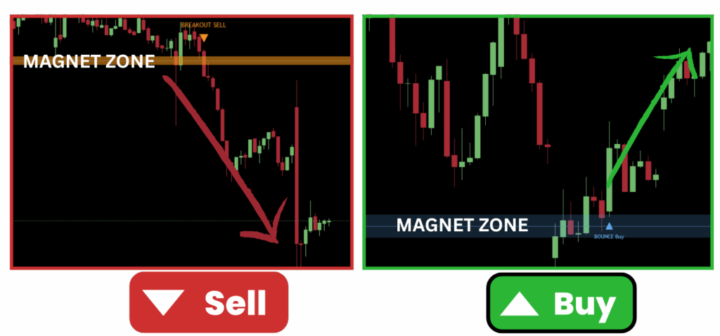 MagniZone flips that on its head by focusing only on real-time trade zones with confirmed reactions. It doesn’t just guess where price might move—it waits for the right conditions, then gives you a clean, visual signal.