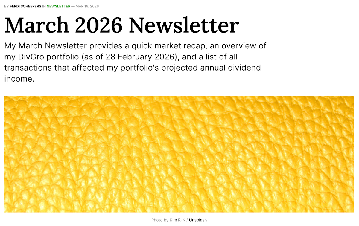 Nearly1,700 members have joined DivGro 2.0 since its soft launch in February 2023. I have decided to delay the formal launch of DivGro 2.0, allowing members to continue with complimentary access to all DivGro 2.0 content, including my DivGro Portfolio.
