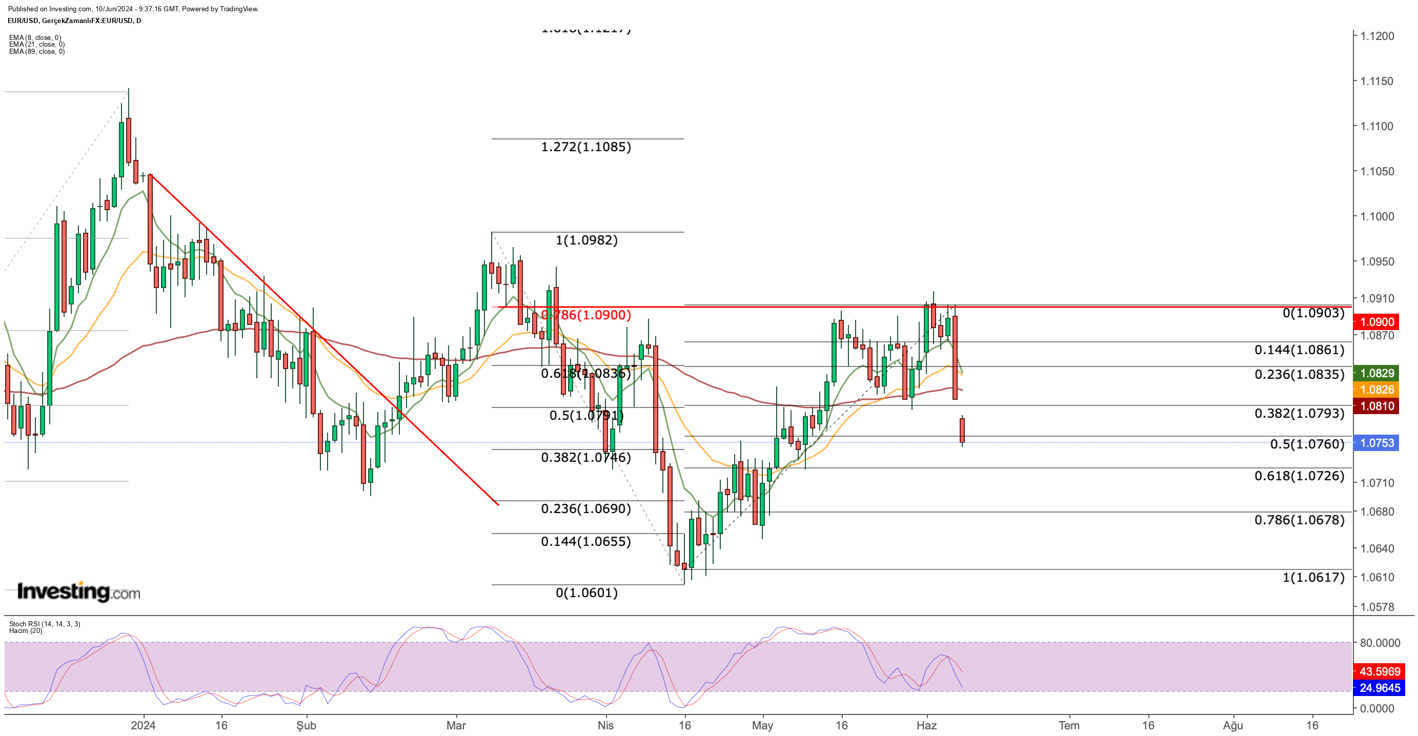 The Eurozone’s interest rate cut failed to lift the EUR/USD pair. The resistance at 1.09 held firm, and strong dollar demand fueled by Friday’s data pushed the pair towards the 1.07 zone.