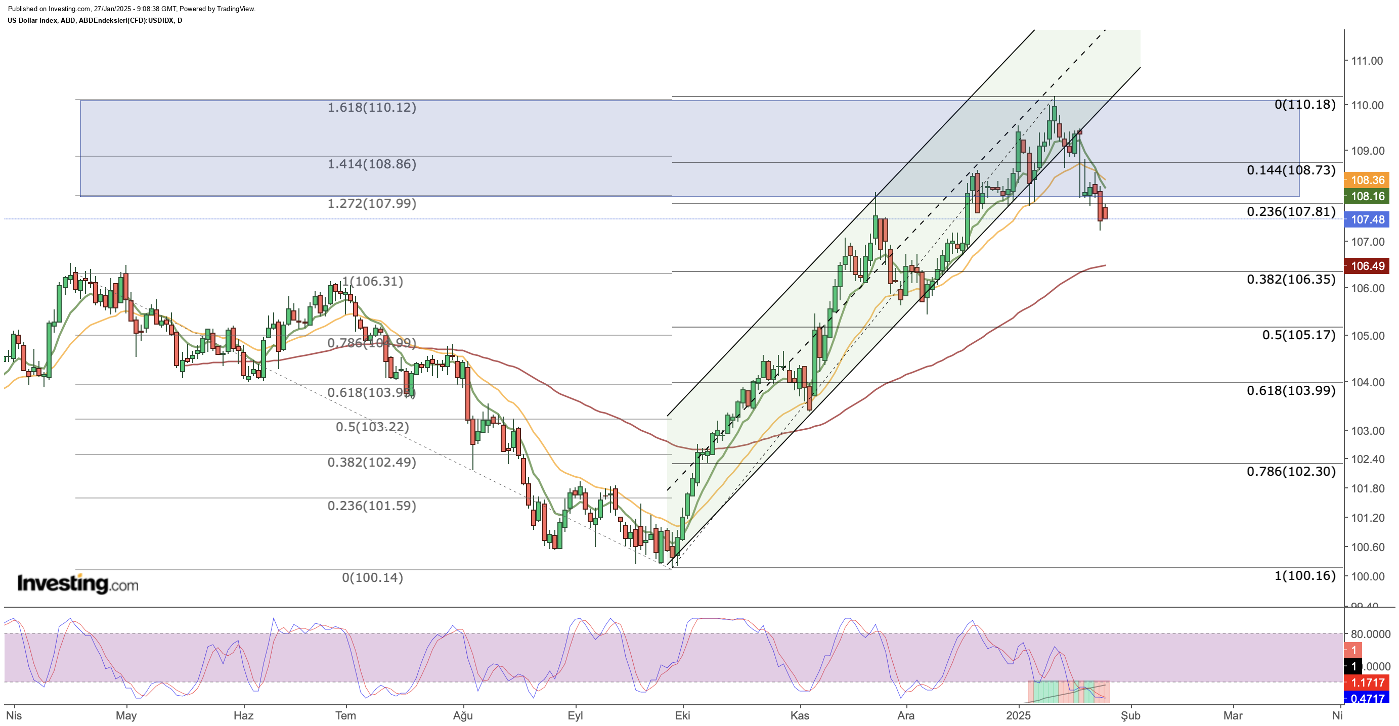 On the flip side, if the dollar maintains above 107.8, it could pave the way for a potential rebound, with 108.7 as the next key resistance before targeting a move toward 111. Any sharp sell-off could bring the 106.35 support into play, and breaking this level could trigger a more significant pullback toward the 103-105 range.