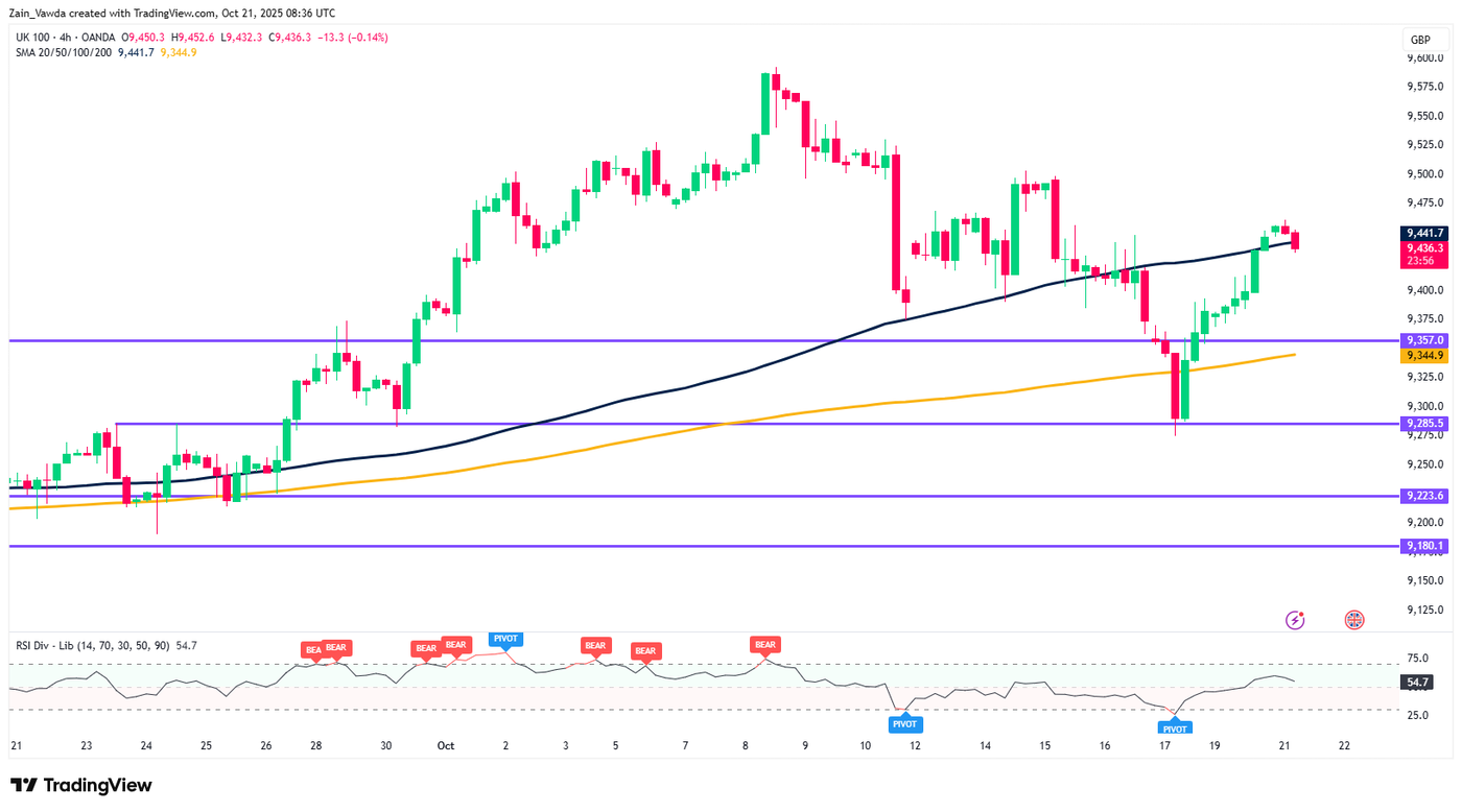 FTSE 100 Index Daily Chart, October 21. 2025