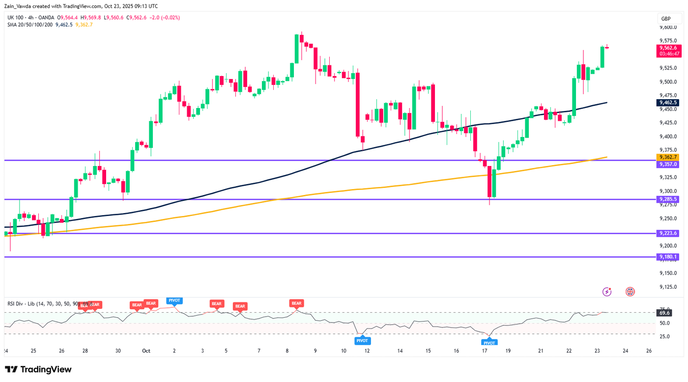 FTSE 100 Index Four-Hour Chart, October 22. 2025