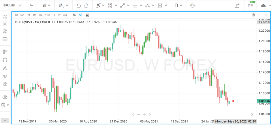 Strength is represented by a green or bullish candle. On the other hand, weakness is represented by a red or bearish candle.