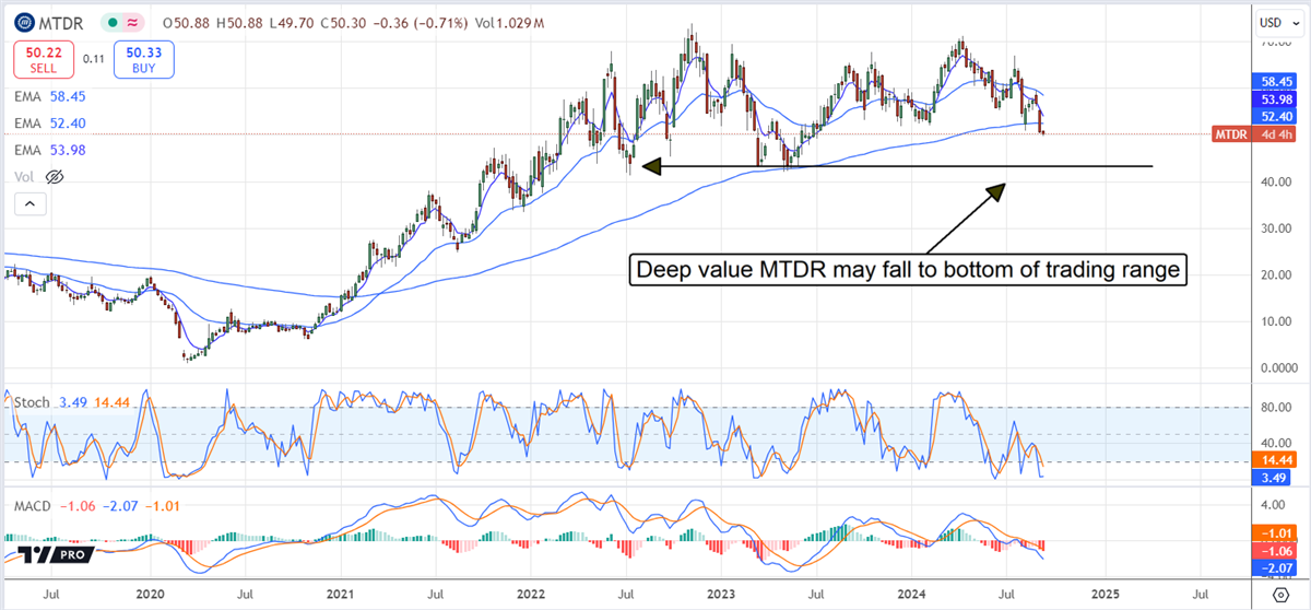 Institutional activity is also robust in Matador stock. The institutions own more than 90% of the stock and are providing a tailwind in 2024 with the balance of activity buying. The largest holders include Vanguard, BlackRock, and State Street, so ETFs and funds are well-represented, but many smaller private managers and numerous retirement funds are also holders. With share prices trading at eighteen-month lows near the bottom of a trading range, their activity may pick up.