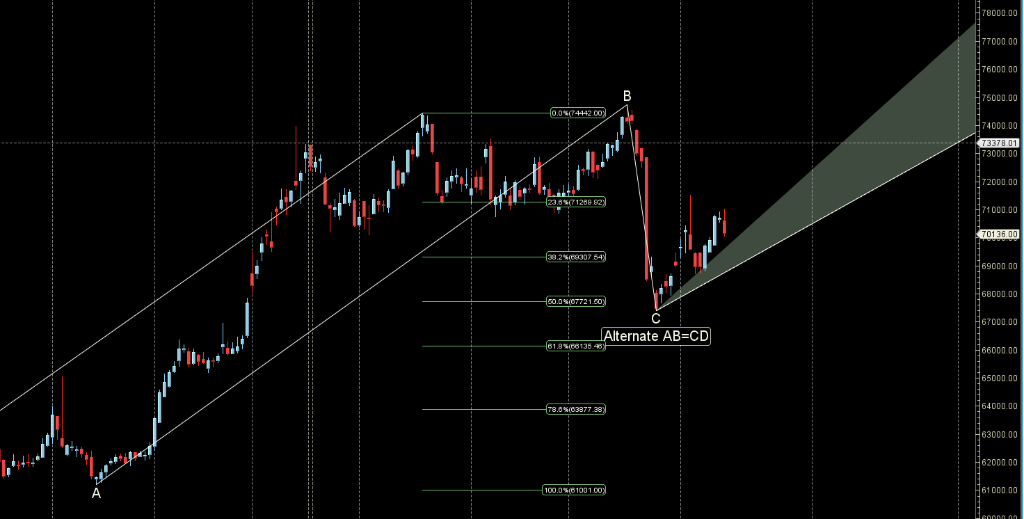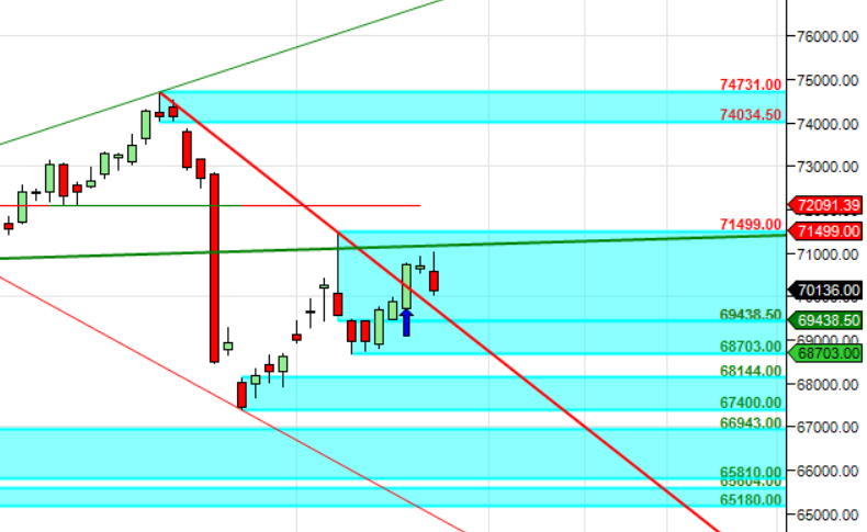 Gold has heading towards its 3×4 Gann Angle resistance @71500