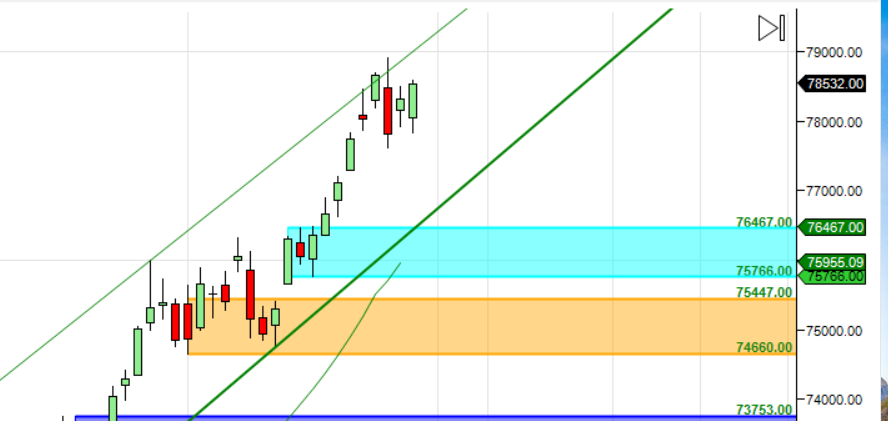 Gold is trading well above its 3×4 gann angle and made a fresh all time high Heading towards 79057 till holding 76797.