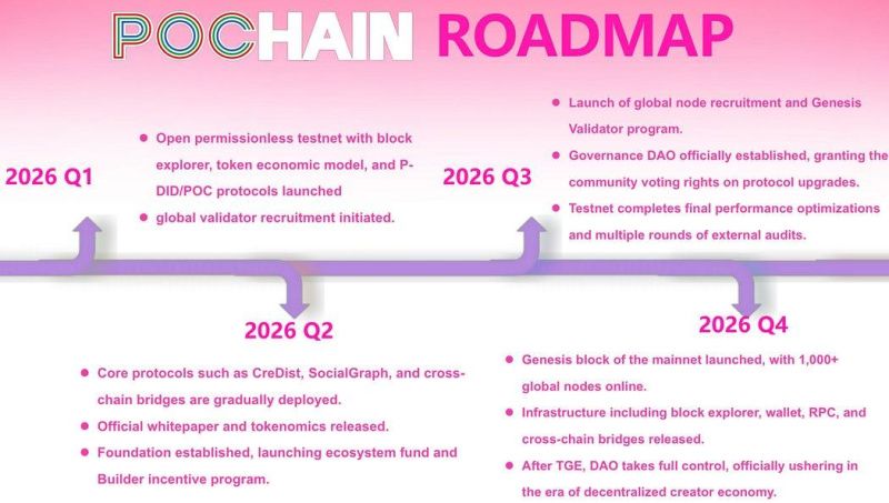 - POChain: A fully sovereign AIGC-focused Layer 1 blockchain for Web3 creators, EVM-compatible with BNB Chain, designed as next-generation infrastructure for AI-native content creation and value settlement. According to the roadmap, the POChain ecosystem will progressively launch the following products in 2026: