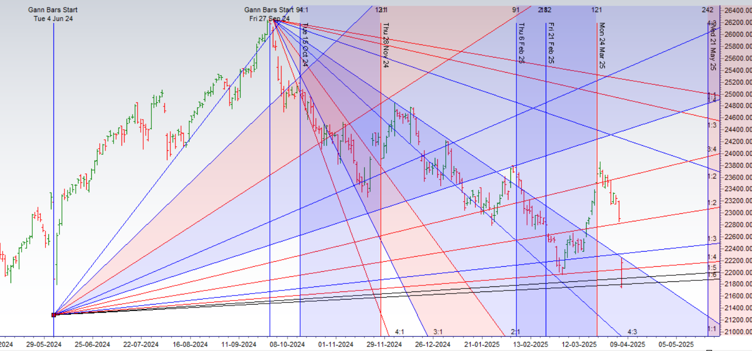 Nifty opened with a sharp gap down yesterday, formed a double bottom, and took strong support at the 1×6 Gann angle, leading to a sharp intraday recovery. Today, we’re set to open with a gap up again — but the key question remains: Can the gap sustain?