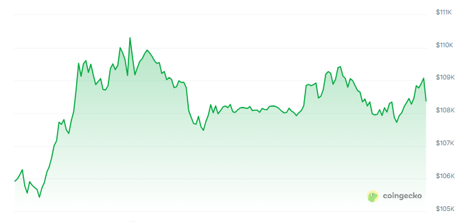 BTCUSD trading at $108,499 on the 24-hour chart: TradingView