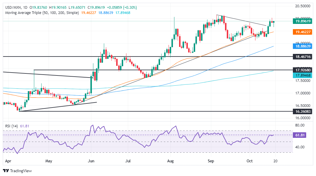 USD/MXN technical outlook: Mexican Peso dives as USD/MXN climbs above 19.80
