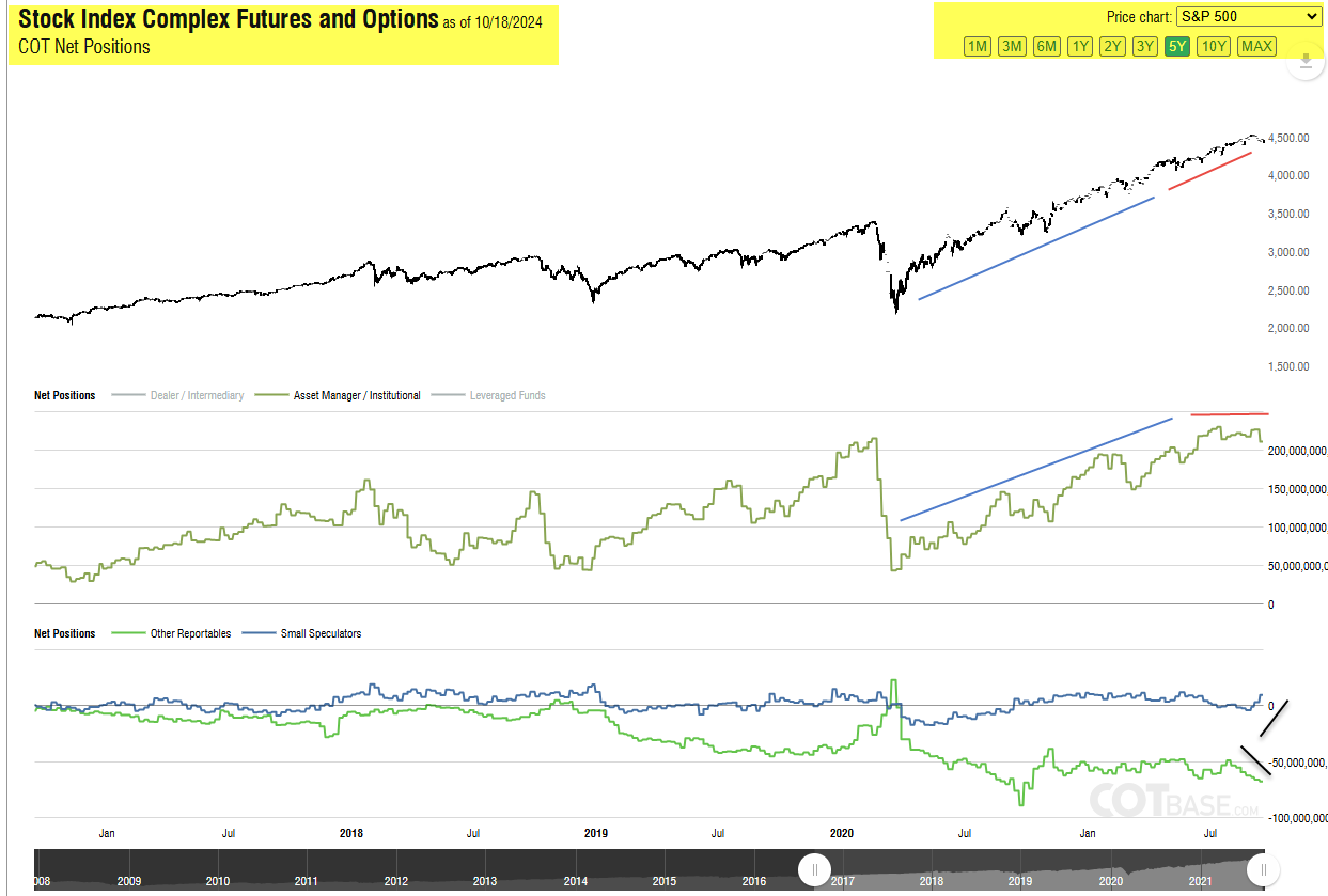 The COT report for the week ending on Friday, October 18th, 2024 (Includes data up to the end of day Tuesday, October 15th, 2024) reflects the following: