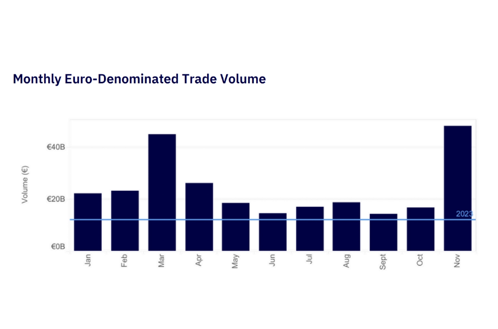 Importantly, monthly euro trade volumes peaked at over €50 billion in November, more than doubling October’s levels.