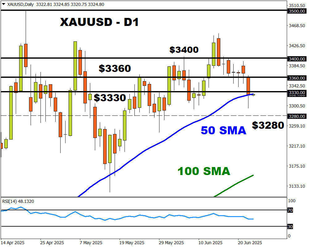 - Should the fragile Israel-Iran ceasefire fall apart, gold could rebound back toward $3360 and $3400.