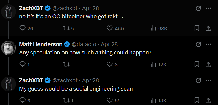 According to investigations, the theft was not conducted by North Korea’s Lazarus Group, and a long-time, “og” Bitcoin holder was the victim, and the holder of the $330M BTC could have been socially engineered and exploited.