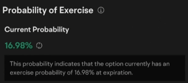 The platform charts implied versus historical IV relationships and calculates the probability of exercise for individual options.