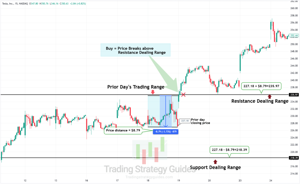 When stock prices cross above the upper momentum threshold (resistance dealing range), traders initiate long positions. Conversely, when prices break below the lower threshold (support dealing range), short positions become favorable.