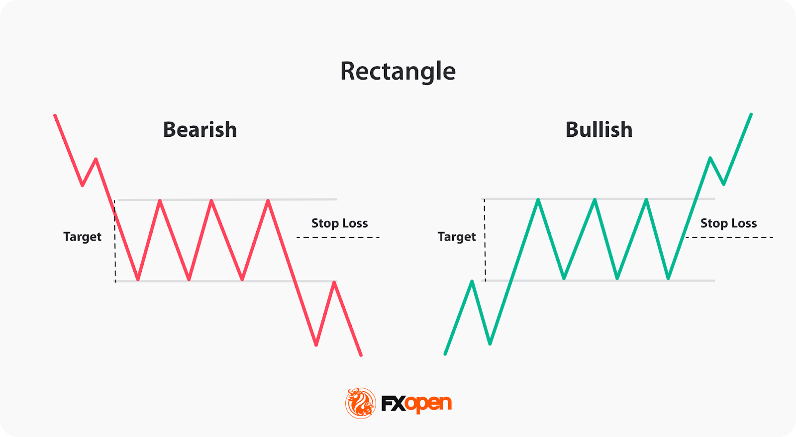 - Take Profit (TP): The profit target might be determined by measuring the height of the rectangle and adding/subtracting that value to/from the breakout point. This gives an estimate of how far the price may move in the corresponding direction.