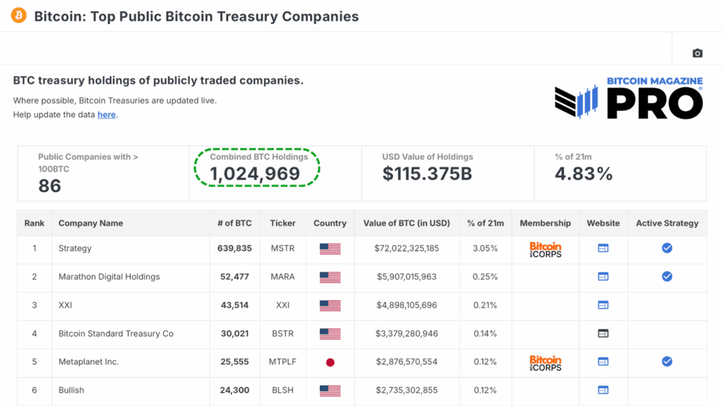MSTR Leads the Current State of Bitcoin Treasury Holdings