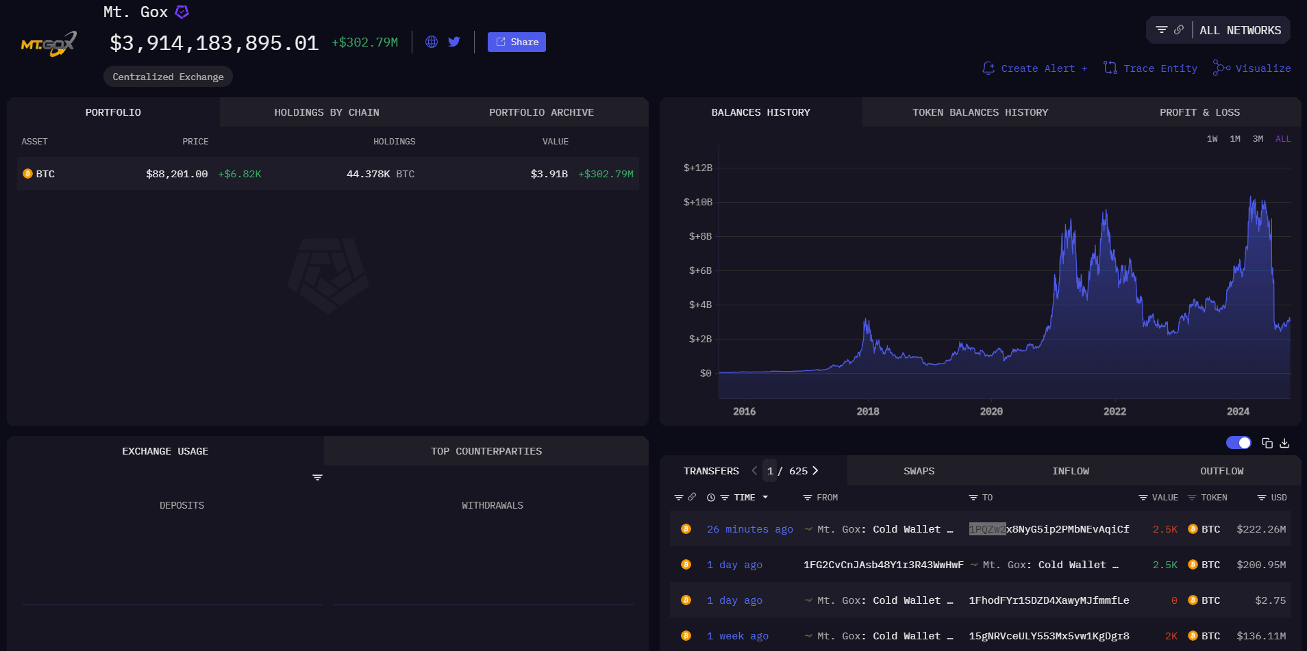At the time of reporting, the defunct crypto exchange still holds around 44,378 BTC in its wallets, valued at approximately $3 billion.