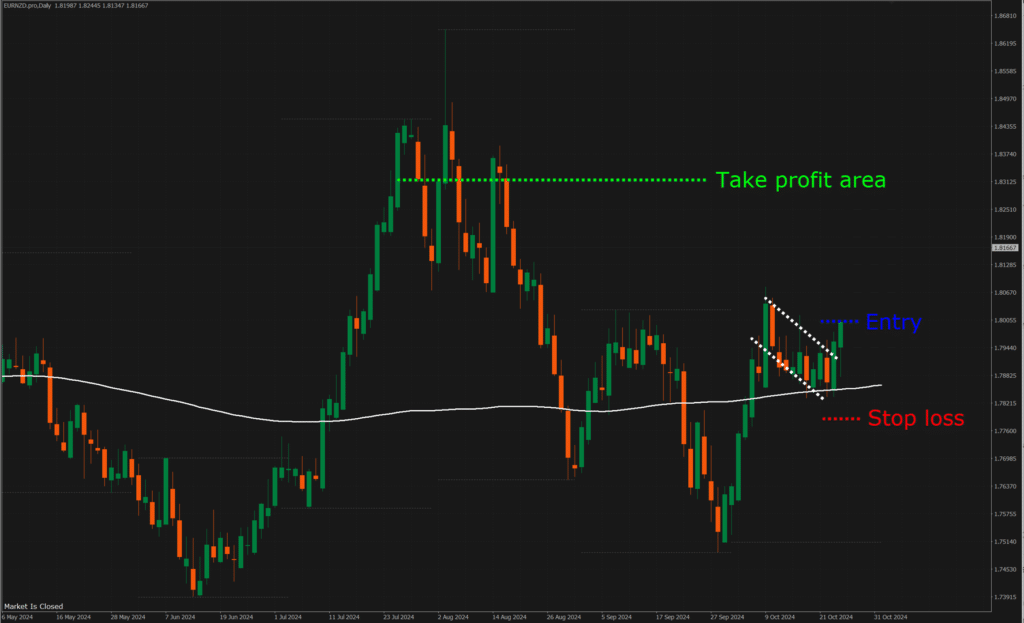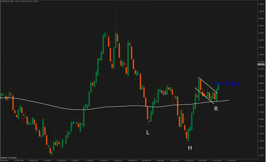 This time, it has indeed broken above the flag pattern and has formed a valid entry trigger.