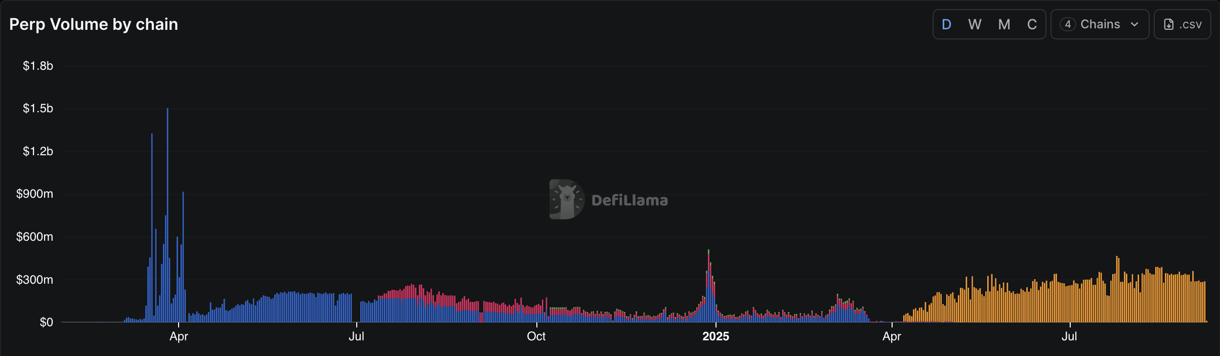 Since April, most Perp volume has moved to the BNB Chain, averaging around $200-$300 million daily, compared to its earlier focus on the Arbitrum (ARB) network.
