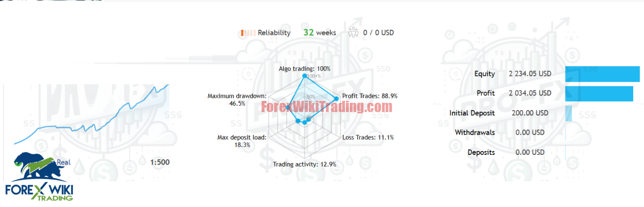 Based on provided data, NeuroTradeX EA demonstrates promising metrics over 32 weeks: