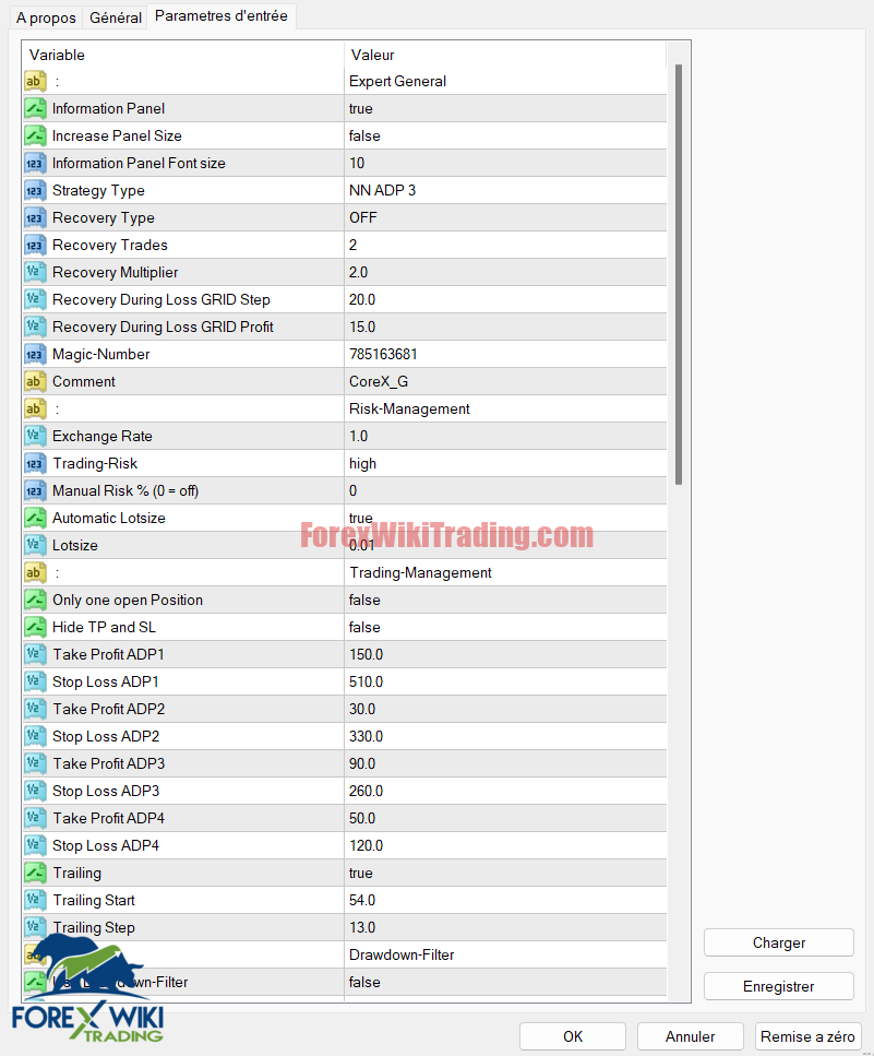 NeuroTradeX EA employs a NN ADP 3 strategy with the following settings: