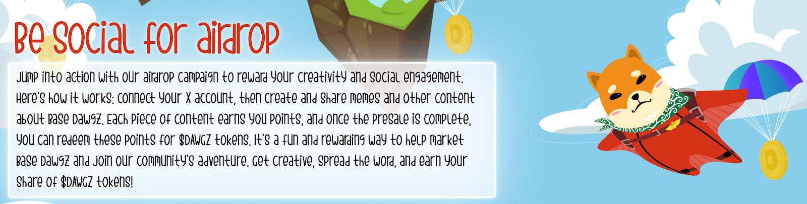 Community members are at the center of Base Dawgz’s marketing strategy, thanks to its share-to-earn system that pays out point rewards for sharing $DAWGZ-centric content on social media.