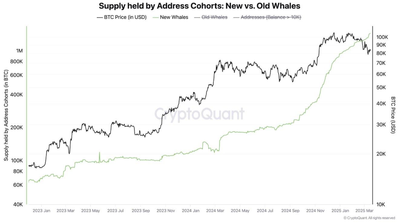 “A distinct cohort of high-net-worth Bitcoin holders—addresses holding at least 1,000 BTC, where each coin has an average acquisition age of fewer than six months—has emerged as a major force in this market cycle,” noted Onchained, an analyst at CryptoQuant.