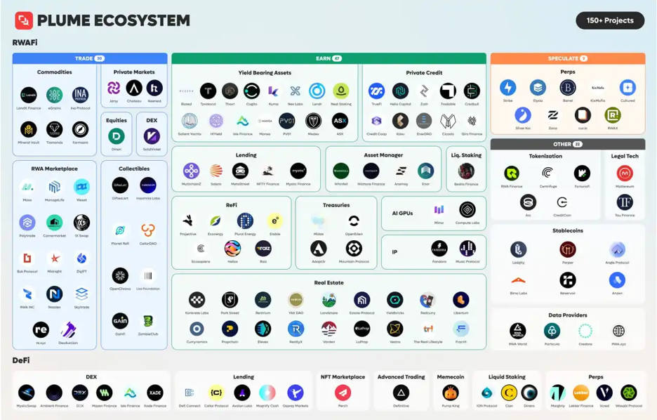 Plume is an RWA-focused Layer 2 ecosystem dedicated to bridging traditional finance (TradFi) and decentralized finance (DeFi) to build a financial ecosystem network that covers over 180 projects. Meanwhile, through the Enterprise Ethereum Alliance (EEA) and the Tokenized Assets Coalition (TAC), Plume has forged industrial alliances with institutions like WisdomTree, Arbitrum, JPMorgan, a16z, Galaxy Digital, and Centrifuge to set industry standards and implement institutional-grade RWA solutions.