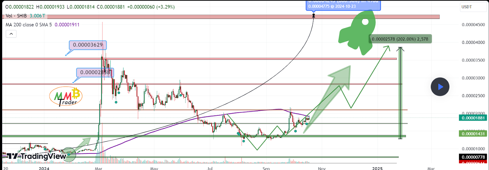 He further emphasized that if SHIB can successfully breach the critical resistance level at $0.00002, it could unlock even more gains, potentially setting the stage for a sustained upward move.
