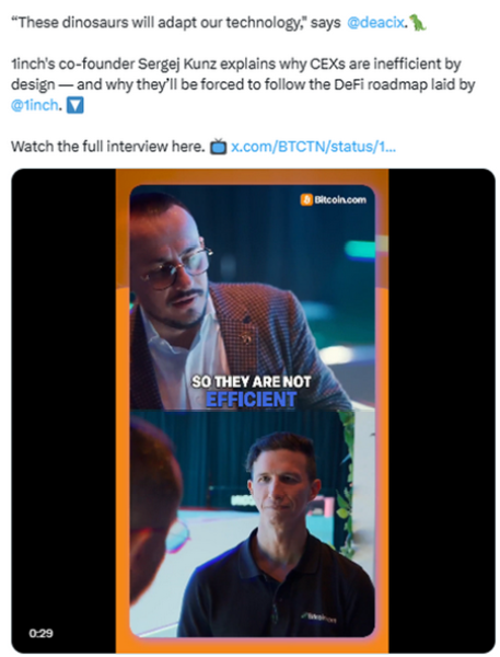 1inch co-founder Sergej Kunz believes centralized exchanges (CEXs) are set to lose their dominance in crypto trading.