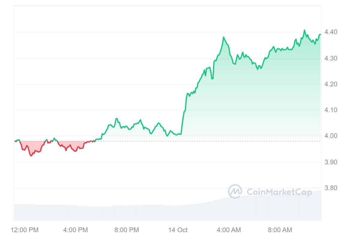 The Graph (GRT) has seen a significant price jump of around 9% in the past 24 hours, with trading volume reaching $108.98 million. Additionally, it has gained 4.82% over the past week and 18% in the last 30 days. The altcoin has been trading within an ascending channel pattern since August, indicating a long-term bullish outlook.