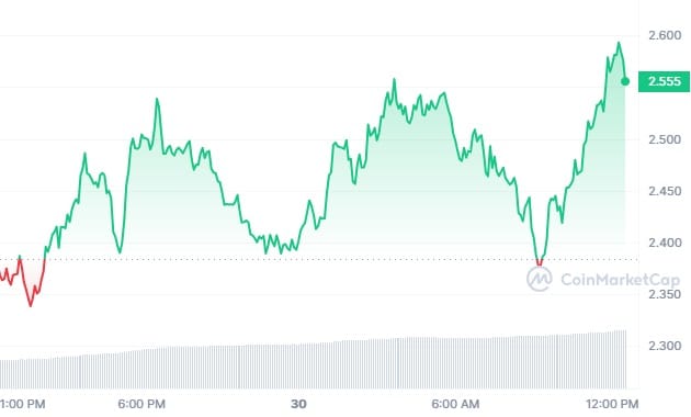 Today, ARKM’s price is $2.56, reflecting a 7.65% increase in the last 24 hours. Its 14-Day Relative Strength Index (RSI) stands at 59.20. This suggests that the cryptocurrency is currently neutral and may trade sideways. However, the ARKM price prediction sentiment is bullish with a Fear & Greed Index of 73 (Greed), indicating increased token transactions and growing optimism for an uptrend.