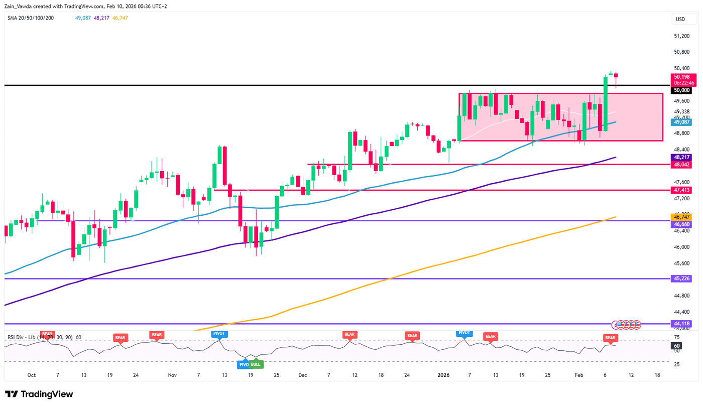 - The Hawkish Shock: If payrolls surprise to the upside (200k+), the Dow could see a sharp pullback as the “higher-for-longer” narrative returns, putting pressure on high-valuation industrial and tech components.