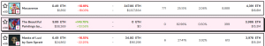 The Beautiful Paintings, an AI-generated non-fungible token series from the digital artist Damien Hirst in collaboration with HENI, that allows collectors to customize their own versions of his iconic Spin Paintings by choosing colors, sizes, and styles for both physical canvas prints and NFTs, was another NFT collection that made positive gains in October 2025. In the past 30 days, the Beautiful Painting has seen its floor price surge 132% to 9.99 ETH.