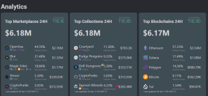 Blur, a renowned non-fungible token marketplace and aggregator platform offering advanced features such as real-time price feeds, portfolio management, and multi-marketplace comparisons, is today’s second most-traded marketplace in the NFT market. In the past 24 hours, the OpeaSea NFT marketplace has raised a trading sales volume of $1.33 million, representing 21.48% of the total market share.