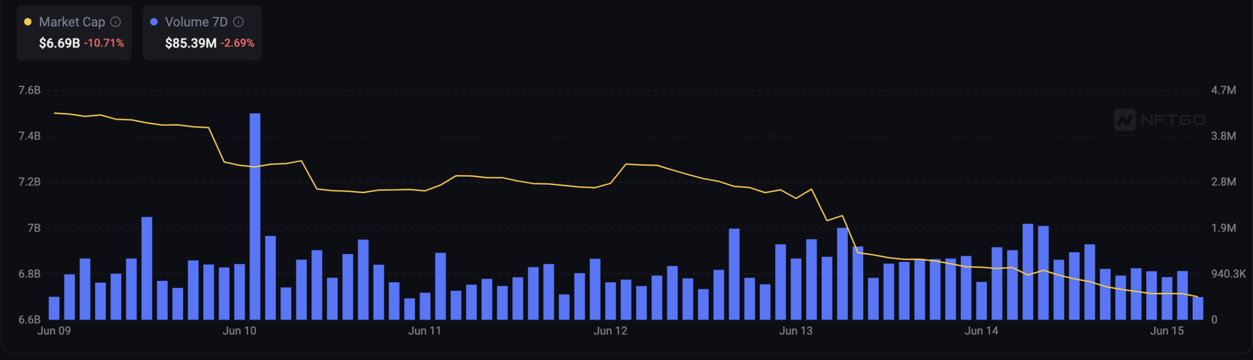 This decline affected the NFT ecosystem, which also fell in value. According to NFTGo, last week’s NFT trading volume amounted to $85.39 million, dropping by 3% on the charts.