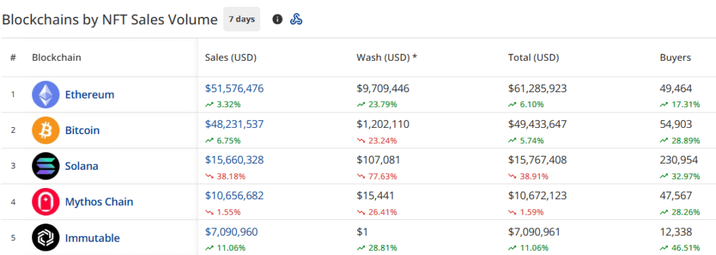 The Ethereum NFT blockchain has shown resilience with $51.3 million in sales, marking a 2.87% increase.
