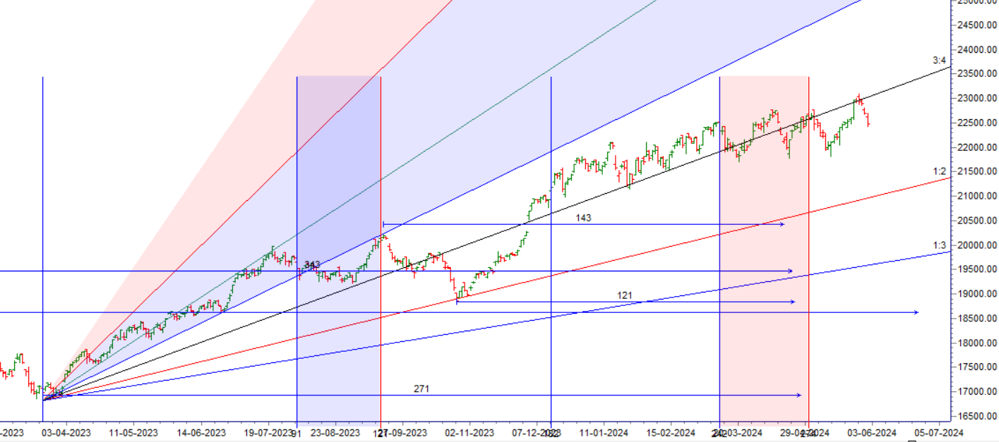 Gann Date worked perfectly, Today we have monthly closing so Bulls and Bears will fight for 22567, Price closing at 22567 would be perfect for the day and monthly close. Today we have MSCI rejig tomorrow (USD 2.5 bn expected inflows) so watch out for 3 PM candel, Exit poll on the weekend which will favour mostly BJP so we can see gap up opening on MOnday so carry overnight positions with hedge.