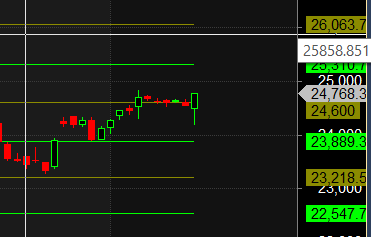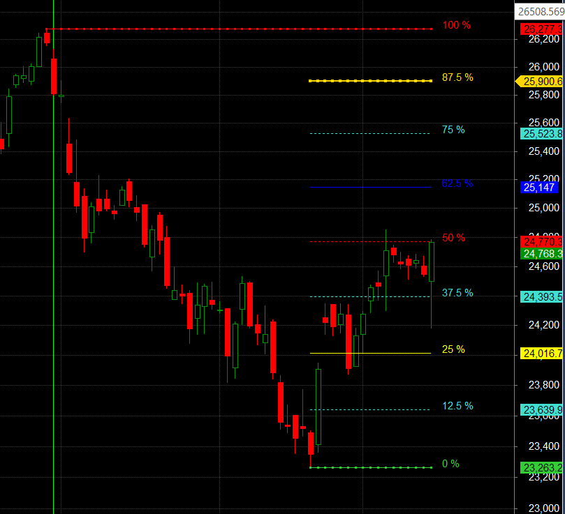 Without additional tools, navigating such sharp intraday moves can result in substantial losses. Today’s low was around the Monthly Open of 24,140, which proved to be a strong support level. As Gann always emphasized the importance of the Open price, today was a live example of how these old studies still work perfectly in modern markets.