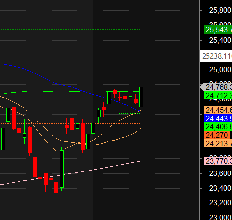 Now Bulls need to close above 24800 above 24770 which is Octave point as shown in below chart. Any close above 24800 can open gates for rally towards 25000/25147.
