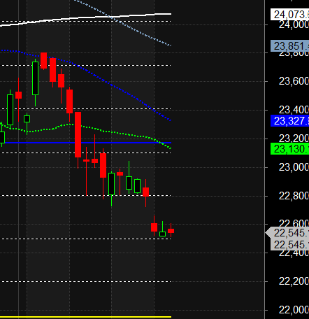Nifty has closed below its 20 SMA @ 23130 Trend has changed to Sell on Rise till below 22700