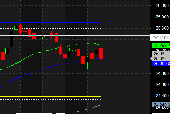 A weekly close decisively below 25,000 would be a catastrophic failure for the bulls. It would confirm the breakdown of the 50 SMA, lock in the bearish sentiment, and open the door for a much bigger fall in the upcoming monthly expiry week.