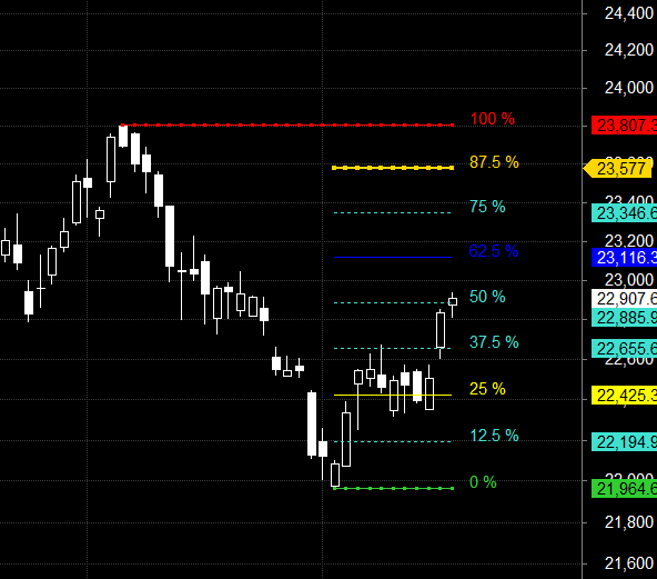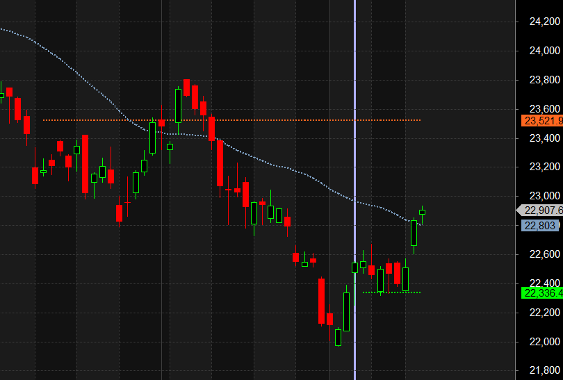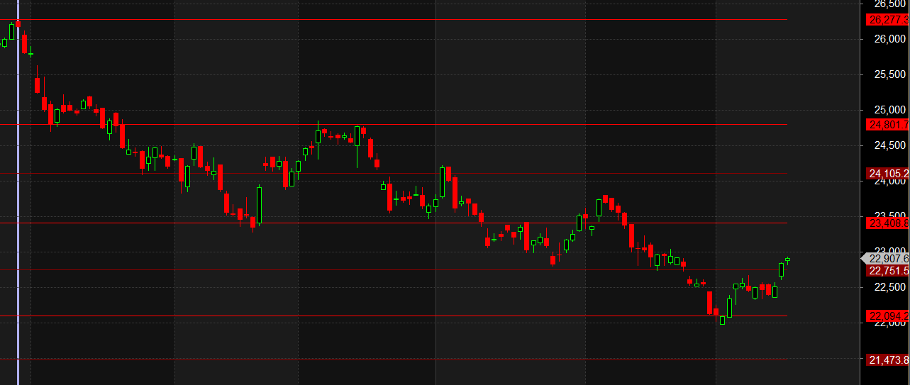 ✔ Bears’ Target: A close below 22,336 to trigger further downside.