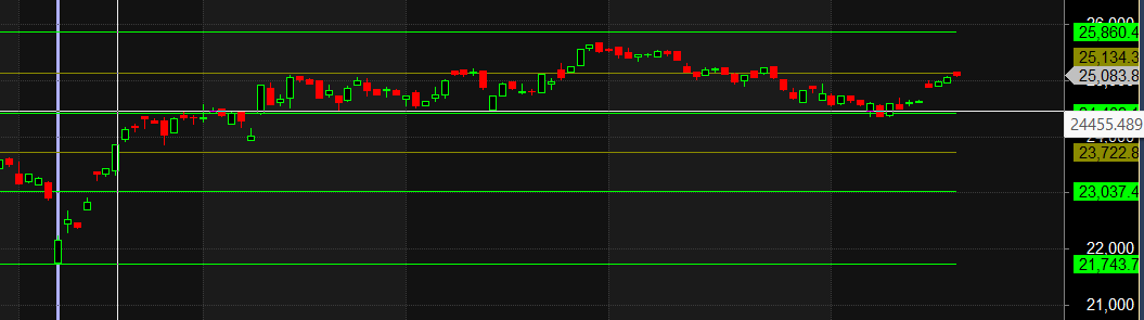 PRICE: Strong harmonic resistance at 25134.