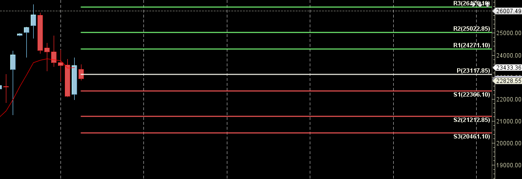 23117 is Monthly resistance zone 22366 is Monthly Support zone.