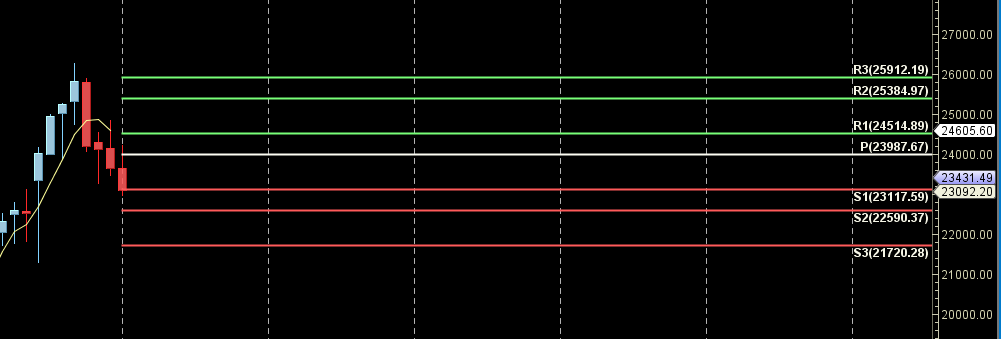 23500 is Monthly resistance  zone 23117 is Monthly Support zone.